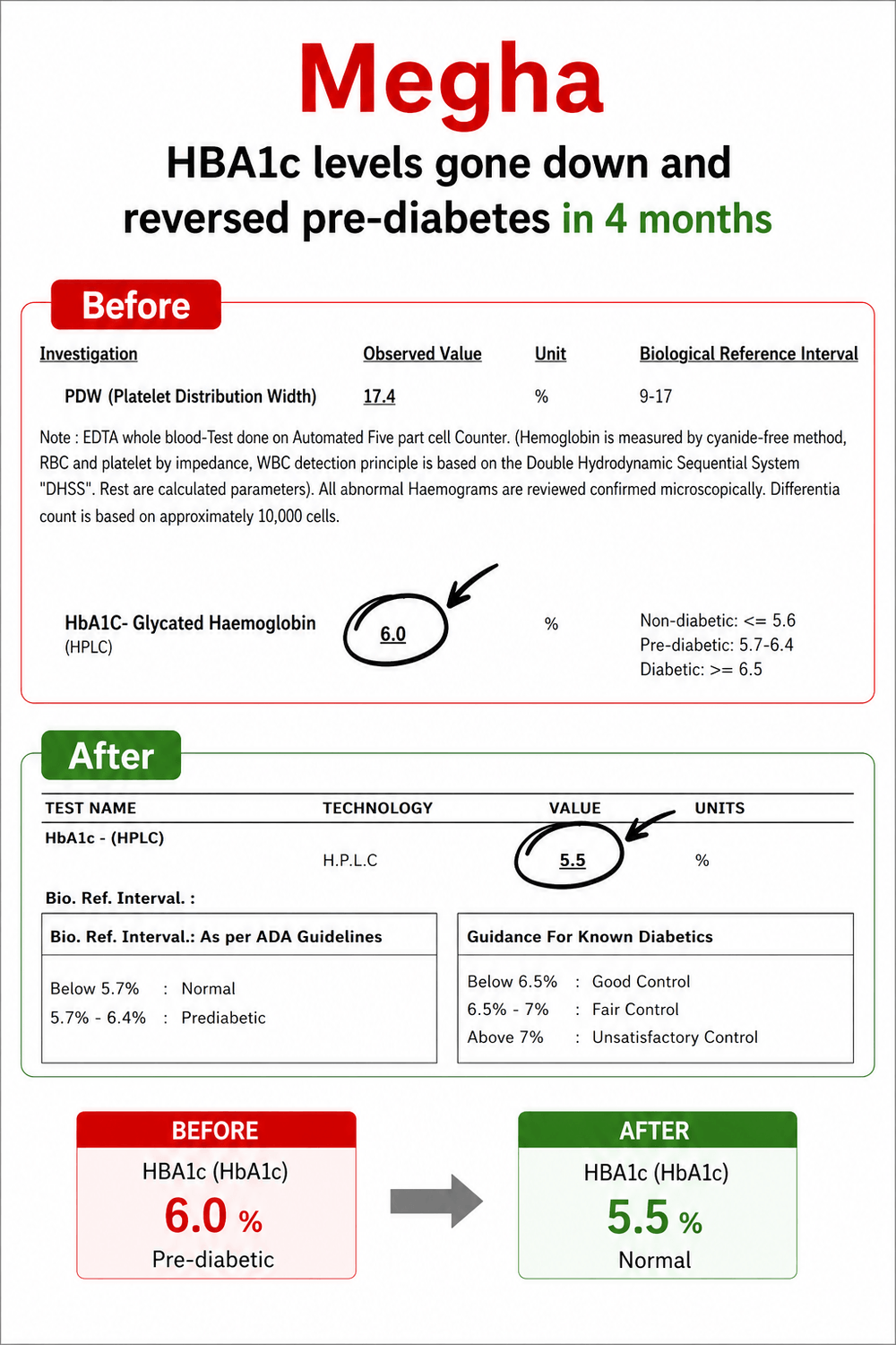 Over time, my HbA1c reduced to 5.3, and I feel more energetic, lighter, and much more aware of my choices now.”